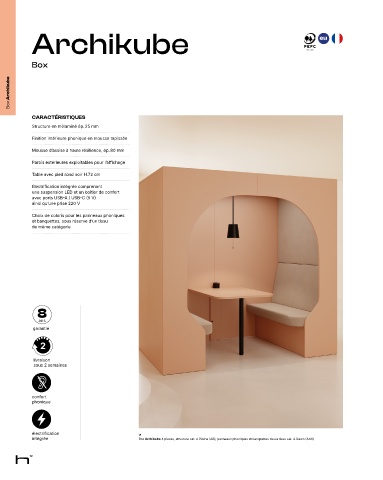 intégrée Box Archikube 4 places, structure cat. A Pêche (AB), panneaux phoniques et banquettes tissus tissu cat. A Dawn (A44)