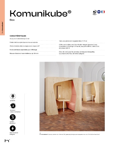 intégrée Box Komunikube® 4 places, structure cat. A Hercule (RH), panneaux phoniques avec banquettes tissu cat. A Fall (A40) et Dawn (A44)